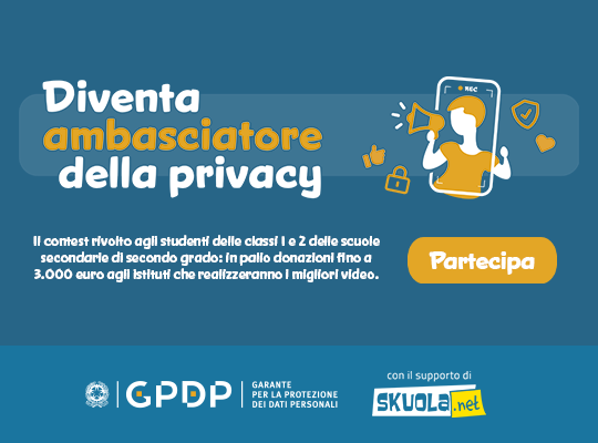 Il kit didattico e il regolamento del contest - con tutte le informazioni utili per partecipare e i dettagli sui requisiti tecnici dei video - sono consultabili su www.gpdp.it/ambasciatoriprivacyhttps://ambasciatoriprivacy.it.
